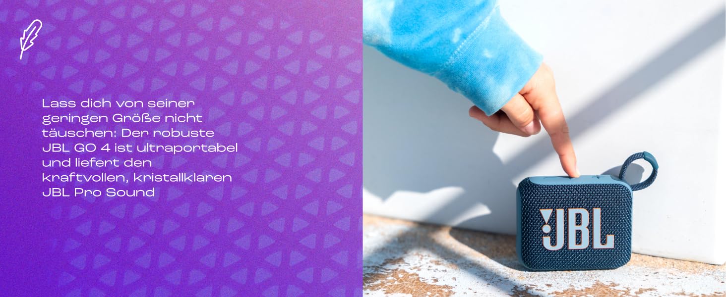 JBL Go 4 in Blau – Tragbare Bluetooth-Lautsprecher-Box mit JBL Pro Sound, tiefem Bass und Playtime-Boost-Funktion – Wasserfest und staubfest – 7 h Laufzeit
