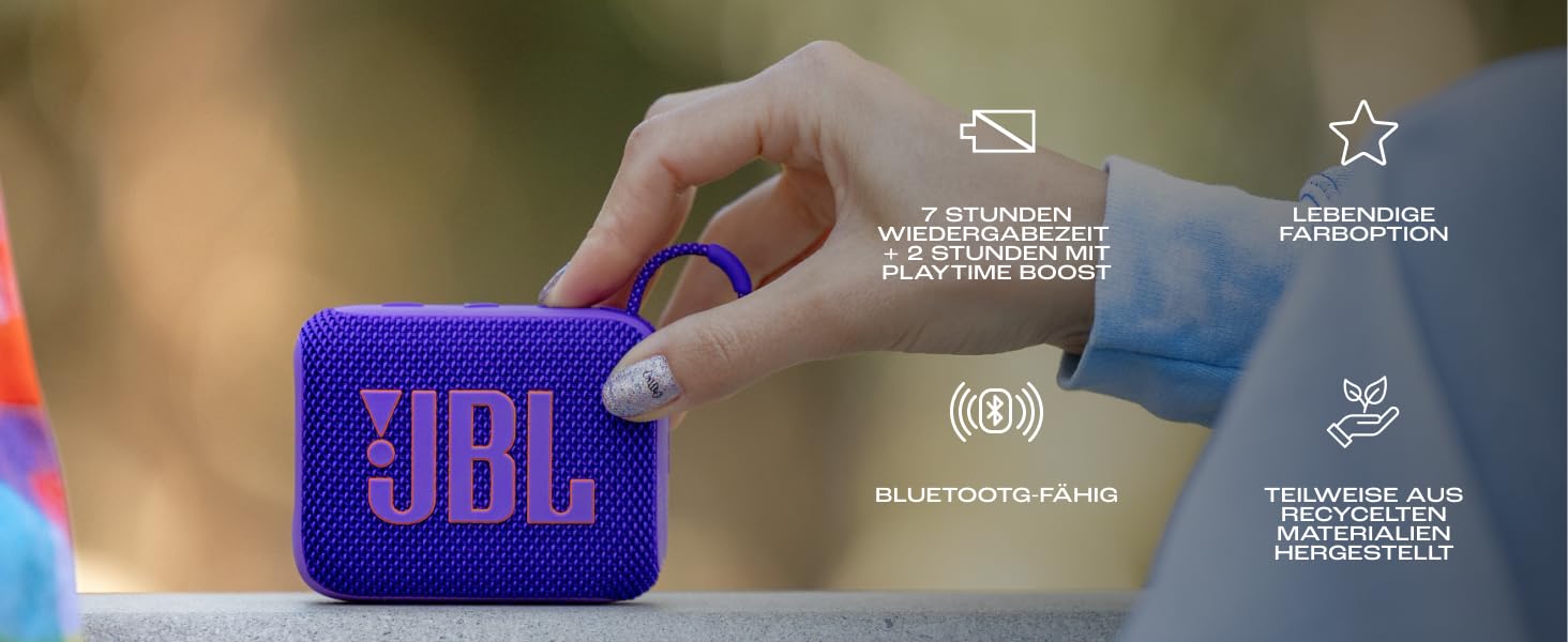 Der Lautsprecher liefert eine Akkulaufzeit von bis zu 7 Stunden - mit der Playtime-Boost-Funktion kann die Akkulaufzeit um bis zu 2 Stunden erhöht werden