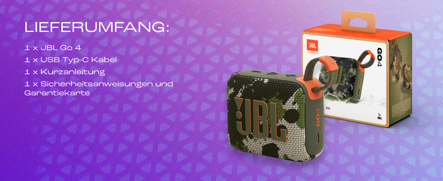 1 x Go 4 von JBL in Blau / Bluetooth-Lautsprecher inkl. Typ-C-Kabel, Kurzanleitung / Sicherheitsdatenblatt