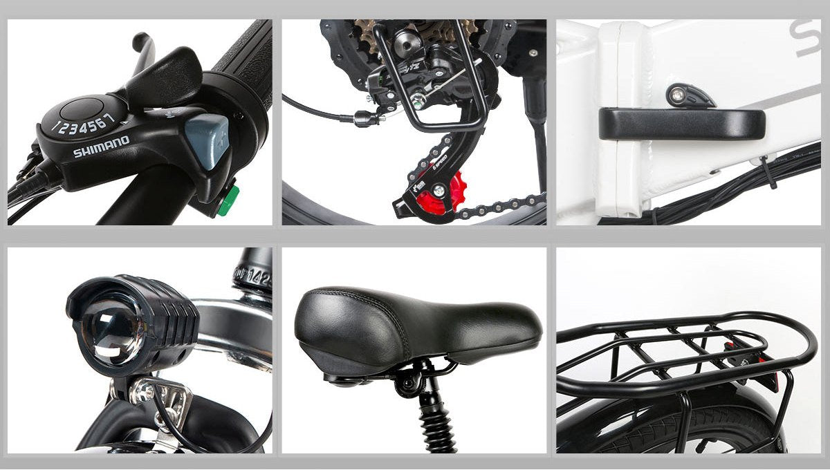Vorder- und Rückseite des Fahrrads können zusammengeklappt werden, wodurch das zusammengeklappte Elektrofahrrad mehr Platz spart und im Kofferraum oder anderen Ecken des Autos verstaut werden kann.