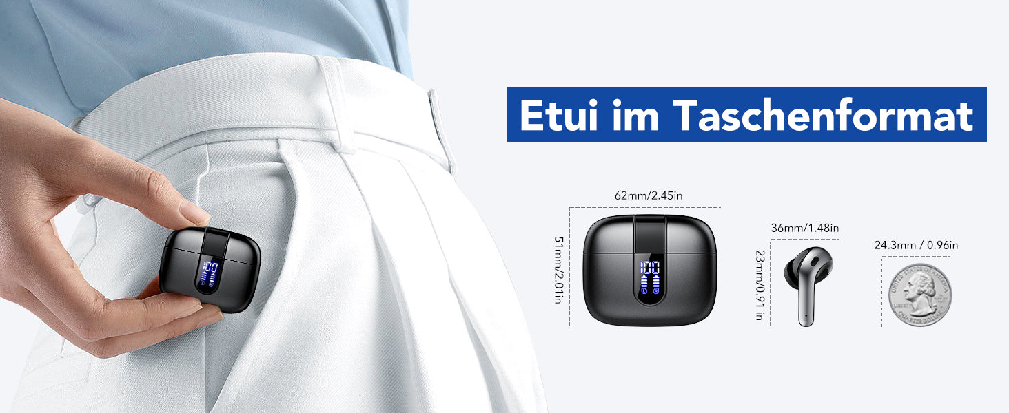 In ear kopfhörer verfügen über die neueste Version der Bluetooth 5.3-Technologie, die 200 % stabiler ist als die Version 5.0 und ein Hörerlebnis mit geringer Latenz sowie stabile Anrufe ermöglicht. Nach der ersten Verbindung entfernen Sie die Ohrhörer und sie werden automatisch mit Ihrem Gerät verbunden.