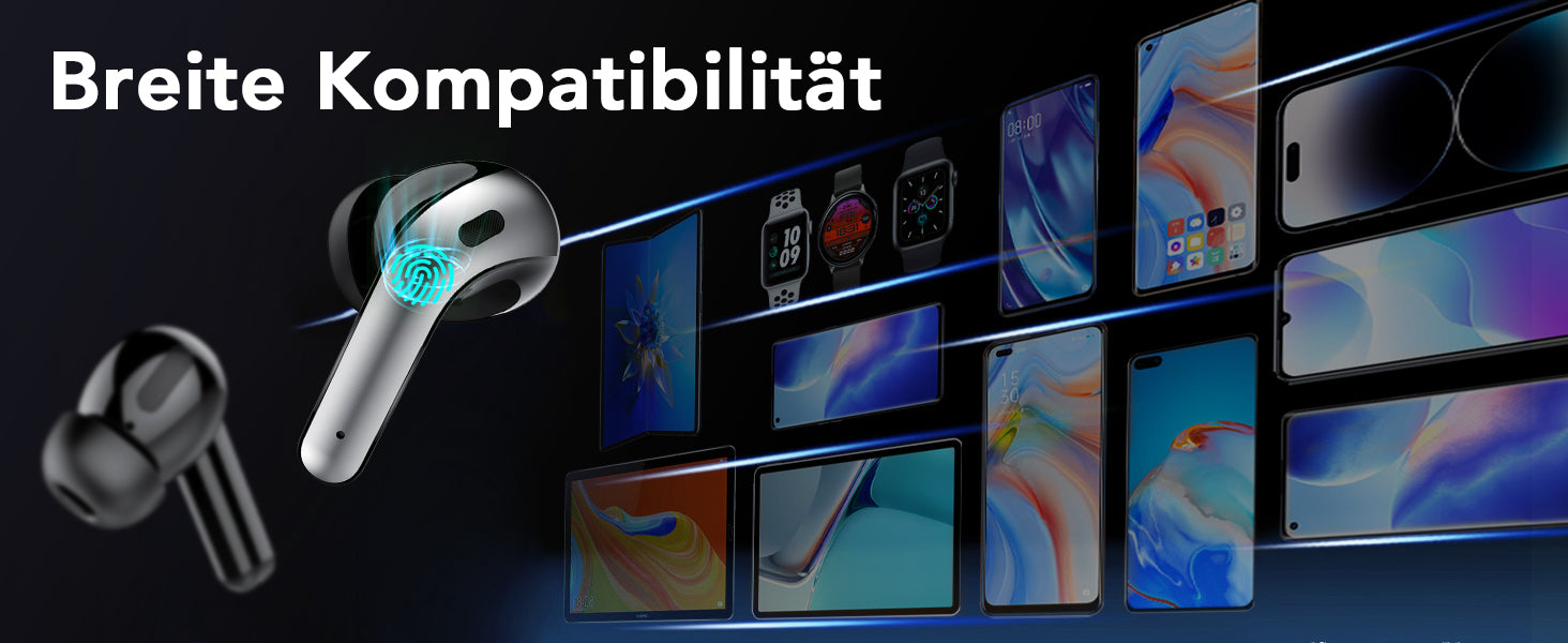 Dank der intelligenten Touch-Bedienung ist es einfach zu bedienen, ohne dass Sie Ihr Handy in die Hand nehmen müssen. Das Wireless kopfhörer lässt sich problemlos mit einer Vielzahl von Bluetooth-Geräten koppeln, ohne dass Sie sich Gedanken über Kompatibilitätsprobleme machen müssen. Einschließlich iOS/Android, Tablets und Laptops.