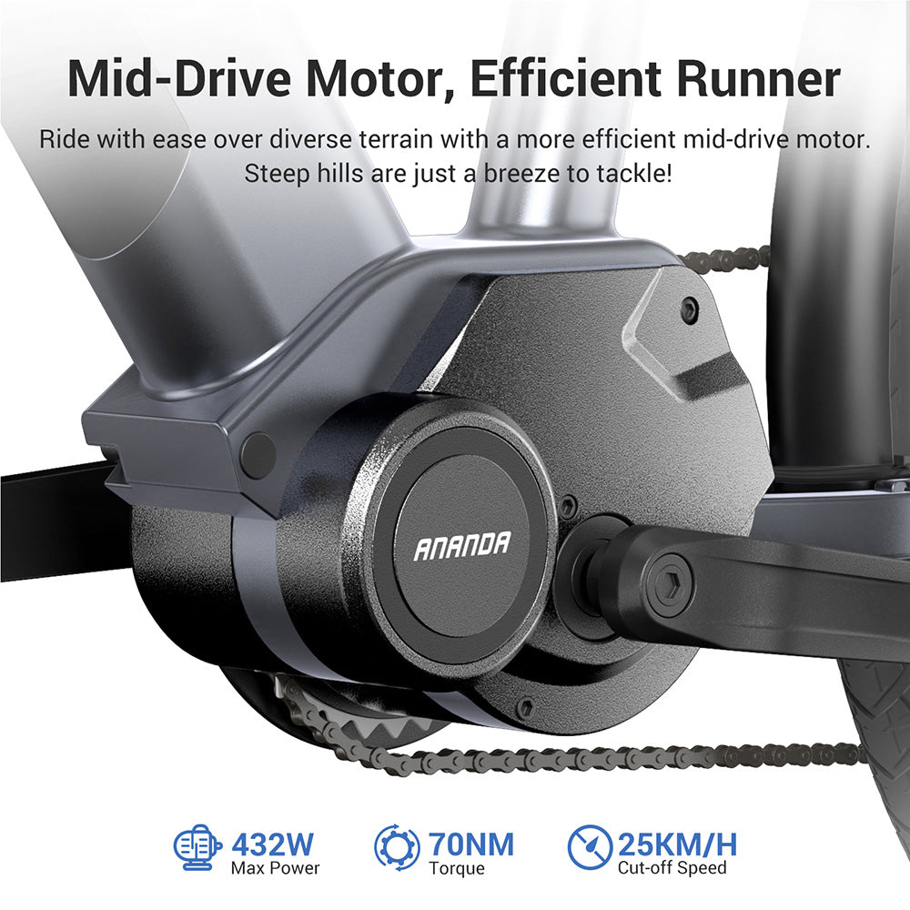 Fahren Sie mit Leichtigkeit über abwechslungsreiches Gelände mit einem effizienteren Mittelmotor. Steile Hügel sind ein Kinderspiel!