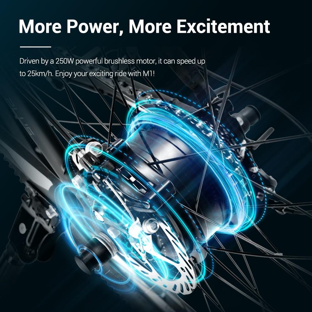 Angetrieben von einem 250W starken bürstenlosen Motor kann es beschleunigenbis 25km/h. Genießen Sie Ihre aufregende Fahrt mit M1!