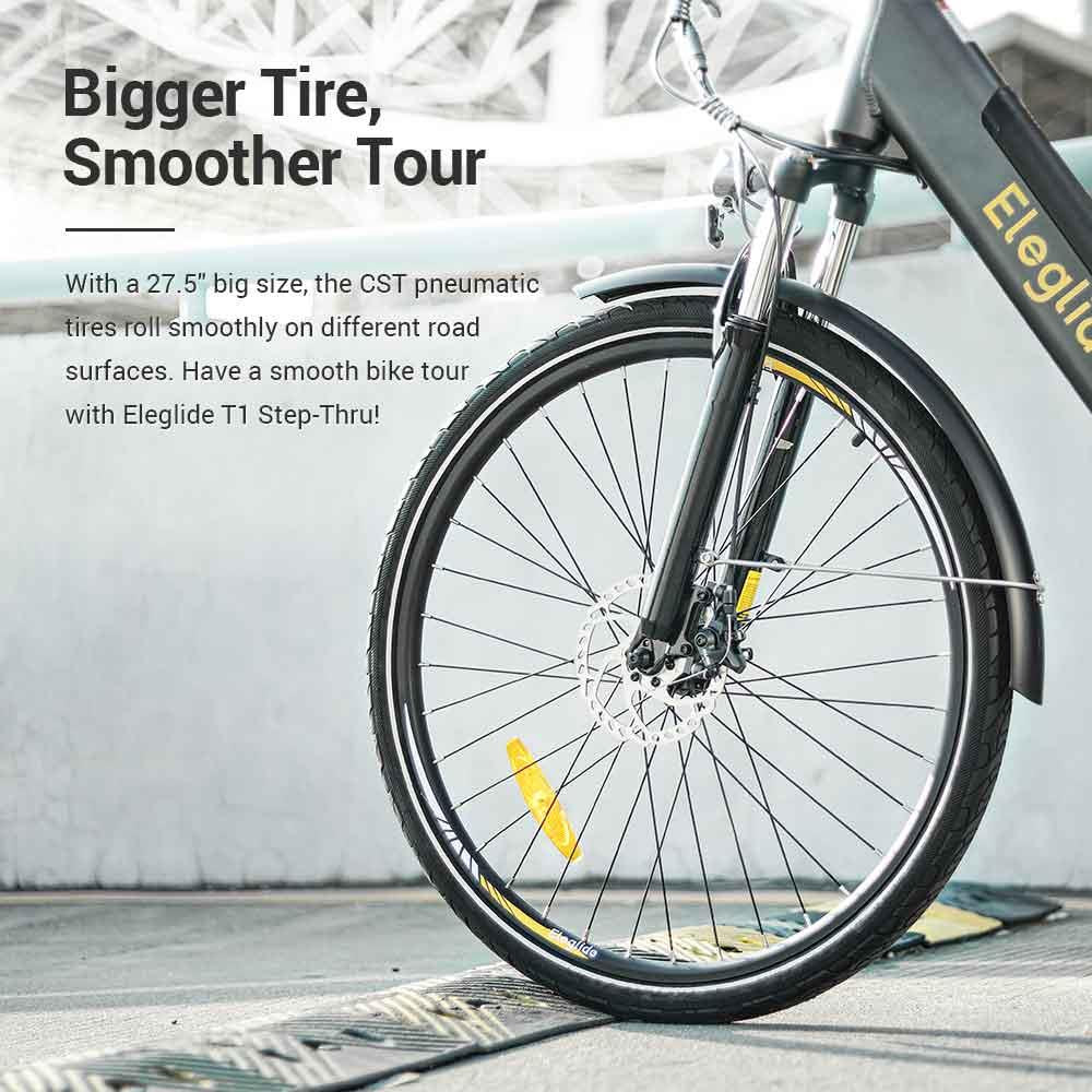 With a 27.5" big size, the CST pneumatic tires roll reibungslos auf verschiedenen Straßenoberflächen. Go on a smooth bike tour with Eleglide T1 Step-Thru!