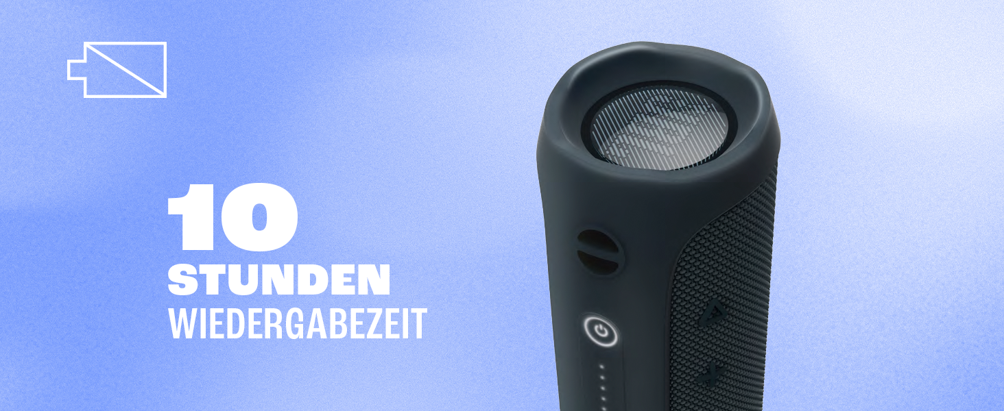 Für Musik, die immer länger und lauter wird, bietet die Flip Essential 2 bis zu 10 Stunden Spielzeit, so dass man sich nicht um Kleinigkeiten wie das Aufladen des Akkus kümmern muss