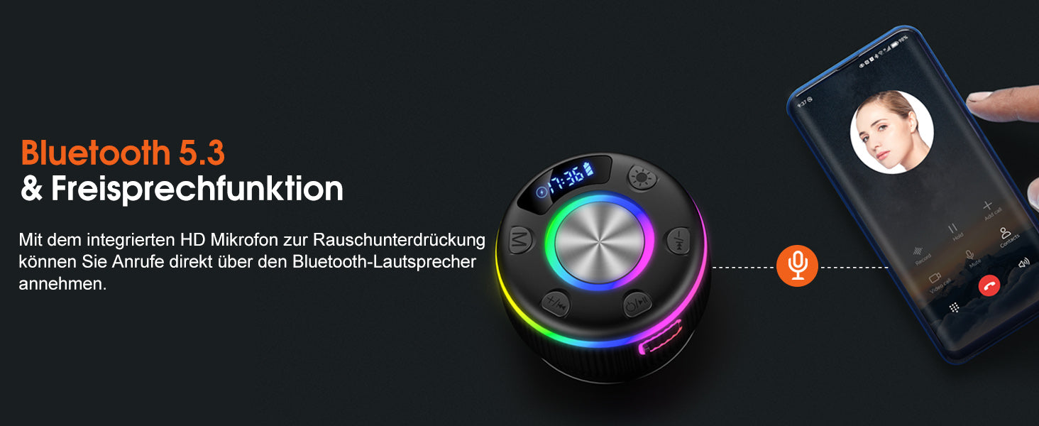 Der leistungsstarke Bluetooth 5.3-Chip verbessert die Verbindungsgeschwindigkeit um 50%, die Verarbeitungsleistung um 30% und die Stabilität um 80% im Vergleich zu Bluetooth 5.0. Der Lautsprecher ist mühelos mit den meisten Bluetooth-fähigen Geräten wie Smartphones und Laptops kompatibel und stellt somit ein ideales Geschenk dar, das garantiert jedem ein Lächeln ins Gesicht zaubert.